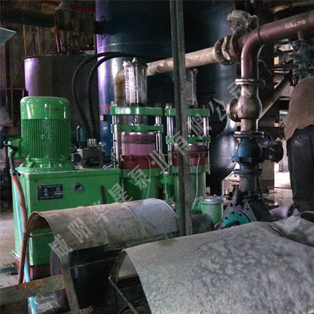 采用一臺YB400__120陶瓷柱塞泥漿泵為6臺800平方米隔膜壓濾機(jī)進(jìn)料。設(shè)定壓力位6.5公斤,開始進(jìn)料時(shí)陶瓷柱塞運(yùn)行頻次大,當(dāng)達(dá)到設(shè)定壓力時(shí)陶瓷柱塞頻次逐漸減少即電機(jī)轉(zhuǎn)速變慢電機(jī)更節(jié)能,根據(jù)濾布的新舊及物料濃度的變化進(jìn)料時(shí)間為30—60分鐘初始流量為120個(gè)立方逐漸減少,由于物料的特性含沙及強(qiáng)腐蝕性對柱塞泵4個(gè)單向閥內(nèi)的橡膠閥片及陶瓷柱塞的橡膠密封損傷較大,4個(gè)橡膠閥片為1個(gè)月更換一次,橡膠密封為20天更換一次,每次費(fèi)用為4000—5000元,這樣年維修費(fèi)就為60000元左右。每次維修1—2人時(shí)間為1—2小時(shí)。