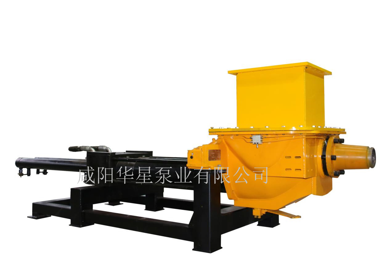 油泥輸送泵結(jié)構(gòu)。油泥輸送泵用于SMP破碎混合泵送系統(tǒng)的高壓單缸柱塞泵,油泥輸送泵,單缸柱塞泵用以輸送含水量低、固體危廢、半固體危廢及破碎后的半固態(tài)混合物等內(nèi)部含有塊狀固體雜物的物料。進口設(shè)有雙螺旋喂料器,在柱塞頭及缸體上設(shè)有互相配合的刀具,可將進入缸體外形比較大的物料進一步切斷、破碎以利于管道輸送;料斗前腔內(nèi)壁帶有復(fù)合清理裝置,可有效清除柱塞上的粘接物。柱塞桿上安裝有柱塞位置傳感器,通過模擬信號可以監(jiān)測及調(diào)整柱塞的行程從而調(diào)整泵的輸送量。