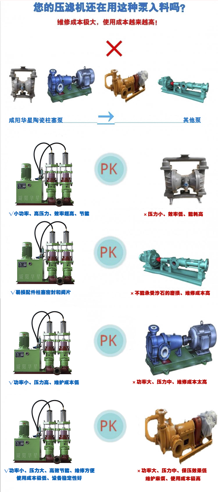 壓濾機(jī)入料泵公司。咸陽(yáng)華星泵業(yè)有限公司28年專(zhuān)注研發(fā)生產(chǎn)壓濾機(jī)入料泵。型號(hào)分為普通型,變量型,耐酸型,變量耐酸型,高壓型,節(jié)能型。產(chǎn)品具體有YBH壓濾機(jī)專(zhuān)用節(jié)能泵,ZN智能變頻泵,YB液壓陶瓷柱塞泥漿泵,YBB壓濾機(jī)專(zhuān)用泵,YB高壓陶瓷柱塞泥漿泵,YB變頻陶瓷柱塞泥漿泵,YB不銹鋼耐腐陶瓷柱塞,YB鈦合金耐腐陶瓷柱塞泥漿泵,污泥輸送泵等等系列。